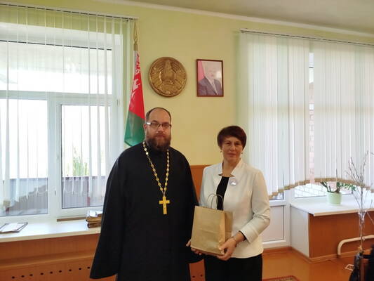 Священник поблагодарил учителей за участие в реализации программ сотрудничества между Православной Церковью и школой, пожелал здравия и успехов в их нелегком труде, а также вручил цветы и сладкие угощения.