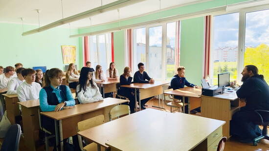 Священник говорил со школьниками на тему: «Зачем я живу? Что делает человека счастливым?».