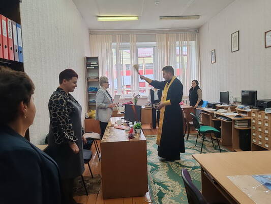 Священнослужитель совершил чин освящения помещений, побеседовал с коллективом на духовные темы и подарил литературу духовно-нравственного содержания.