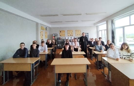 Священнослужитель беседовал со школьниками о духовных и нравственных ценностях. Участники диалога обсудили понятия «цена» и «ценность», какие ценности волнуют современного человека. Также провели небольшой тест на определение главнейших ценностей группы.