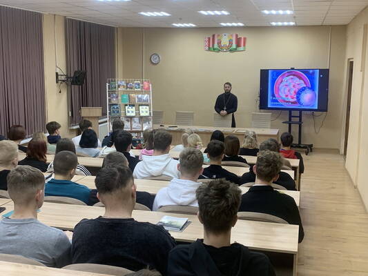 11 декабря клирик храма святых благоверных князей Бориса и Глеба г. Новогрудка иерей Евгений Запольский провел беседу в с учащимися 1-2 курсов Новогрудского колледжа технологий и безопасности на тему: «Аборт и его последствия».