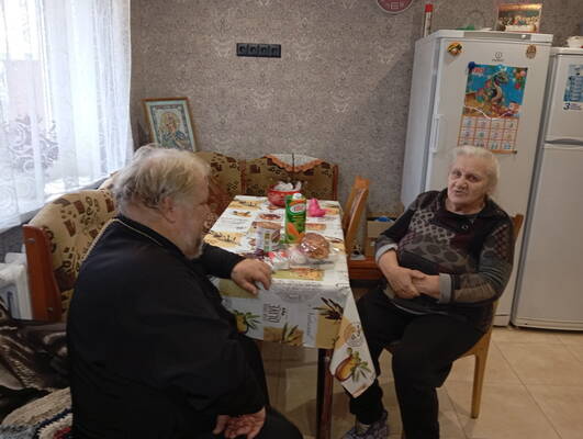 Священник поздравил пожилых граждан с праздником, рассказал его историю и оказал помощь продуктами питания.