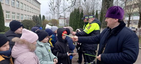 «Стань заметнее в темноте»: священник и сотрудники ГАИ вручили школьникам фликеры