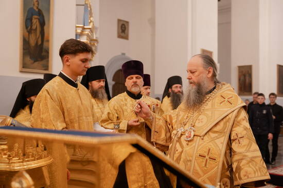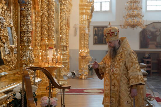 Поздравив молящихся с воскресным днем, архиепископ Гурий напомнил, что Святая Церковь прославляет отцов VII Вселенского собора, которые утвердили Православие и защитили иконы.