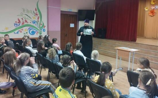 Священник провел беседу с детьми о дружбе, объяснив, какими качествами должен обладать настоящий друг. Кроме того, школьники приняли активное участие в составлении пословиц и поговорок о дружбе и выделили ее ключевые признаки.