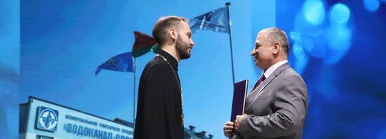 Праздничное мероприятие проходило в Слонимском районном центре культуры. От лица Управляющего Новогрудской епархией священник озвучил приветственный адрес, который затем передал директору предприятия «Водоканал-Слоним» В.В. Емелину.