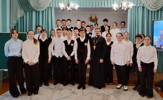 В рамках визита священник побеседовал с педагогами и учащимися о талантливом земляке, а также на духовные темы.