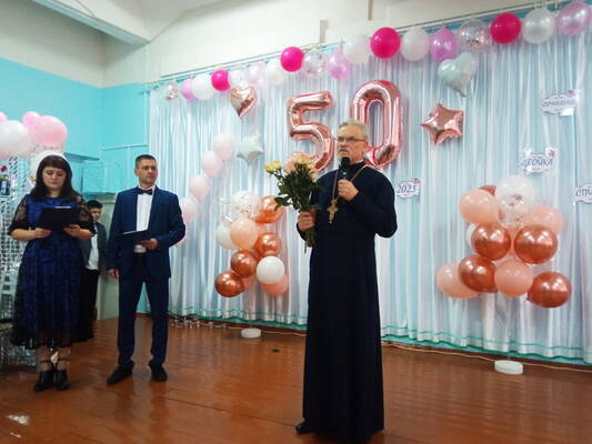 Протоиерей Александр обратился к присутствующим со словами поздравления, вручил директору школы икону Казанской Божией Матери, а троим педагогам архиерейские грамоты за труды во славу Православной Церкви.