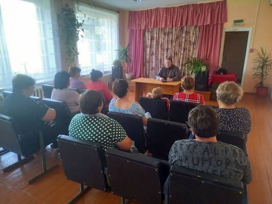 Священник рассказал о празднике Успения Пресвятой Богородицы и связанных с ним событиях. В доверительной атмосфере собравшиеся со вниманием слушали священника, задавали вопросы на житейские темы: о воспитании детей, о семейном понимании друг друга, о честности и труде.