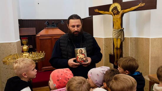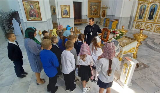 Настоятель храма протоиерей Вадим Кузьмич рассказал детям о Боге как Небесном Отце, о храме как доме молитвы, о добрых поступках и любви к ближним. Особое внимание было уделено Пресвятой Богородице — Небесной Матери, которая молится за всех людей и помогает каждому, кто обращается к Ней с верой.
