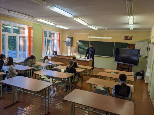 О вере, надежде, любви и милосердии говорил священник со школьниками