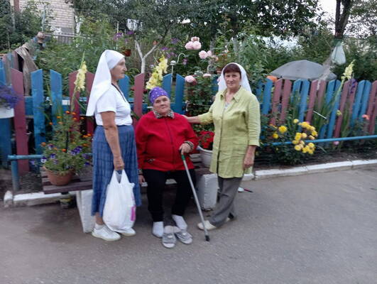Сестры побеседовали с прихожанками на духовные темы, поинтересовалась их нуждами и передали продуктовые наборы.